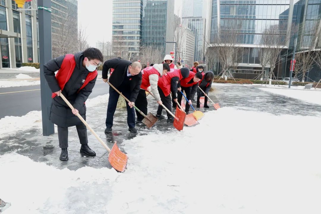 集团联合团总支组织动员20余名团员青年成立应急清雪除冰小分队,对上实中心T2楼周边区域进行清雪除冰工作。大家分工明确、密切配合、忙碌有序,使用铁锹碎冰、溶雪剂化雪、扫帚清雪,对停车场、坡路、公共场所等区域积雪和冻冰展开地毯式清除,为雪后集团员工及周边群众安全出行提供了便利。
