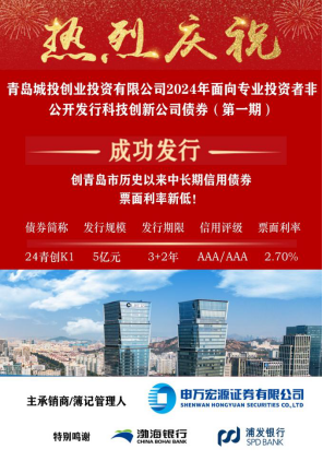 4月9日,百家乐 创投公司在上交所成功发行首期科技创新公司债券(24青创K1)。本次科创债发行规模5亿元,期限3+2年期,票面利率2.70%。创投公司在2023年底成为青岛市首家AAA信用评级创投企业,时隔仅3个月又成功获取10亿元增量批文并成功发行科技创新公司债券。在百家乐集团财务资金管理部协同指导下,创投公司紧抓发行窗口,首次亮相就吸引了23家投资机构,发行利率创青岛市中长期债券历史新低。