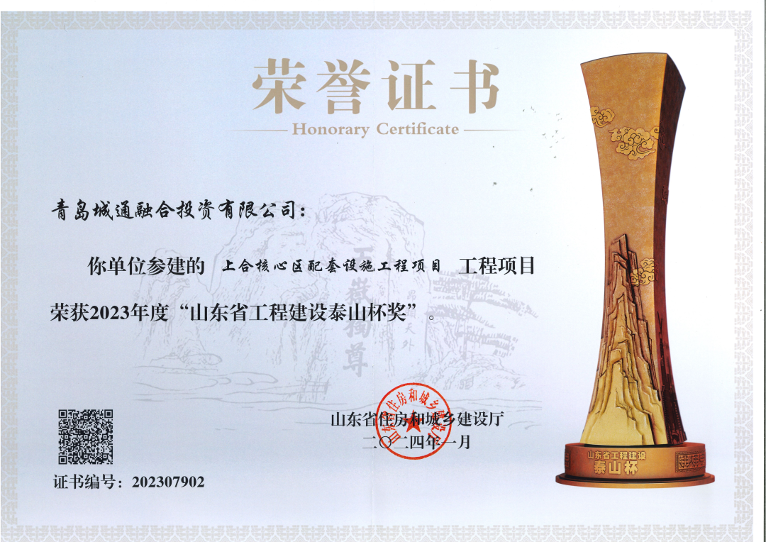 5月10日,山东省住房和城乡建设厅正式授予百家乐 产业园集团参建的上合核心区配套设施工程项目“2023年山东省工程建设泰山杯”荣誉,该荣誉是全省全年度建设工程质量领域的最高荣誉。