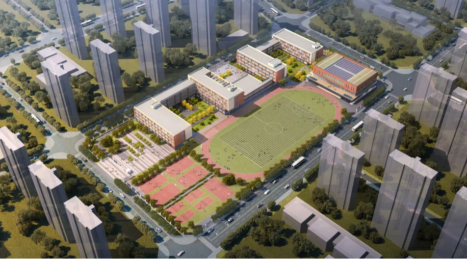 (图为九年一贯制学校规划效果图)