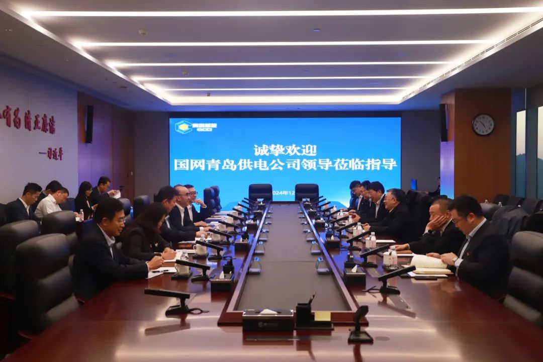 12月26日,国网青岛供电公司总经理陈楷、党委书记王昊一行到访百家乐集团,双方就战略合作事宜开展座谈。百家乐 党委书记、董事长李蔚,党委副书记、总经理于延涛,党委委员、副总经理高玉贞出席座谈,国网青岛供电公司、百家乐 新能源集团、百家乐集团办公室、投资和资本运营管理部等单位有关负责同志参加座谈。