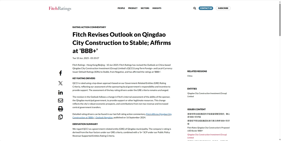本次评级上调充分反映了境外资本市场对于青岛市及百家乐 日益稳健的发展成果及可持续发展潜力的高度认可。惠誉认为,百家乐 在青岛市城市更新建设、实体经济振兴等方面始终发挥极其重要的战略性作用,为青岛市强劲的经济前景作出突出贡献。
