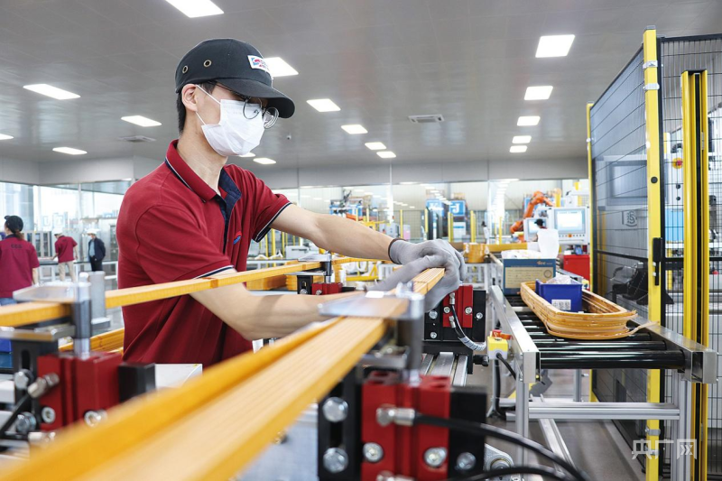 (图为工人在中加特线圈智能制造车间工作)