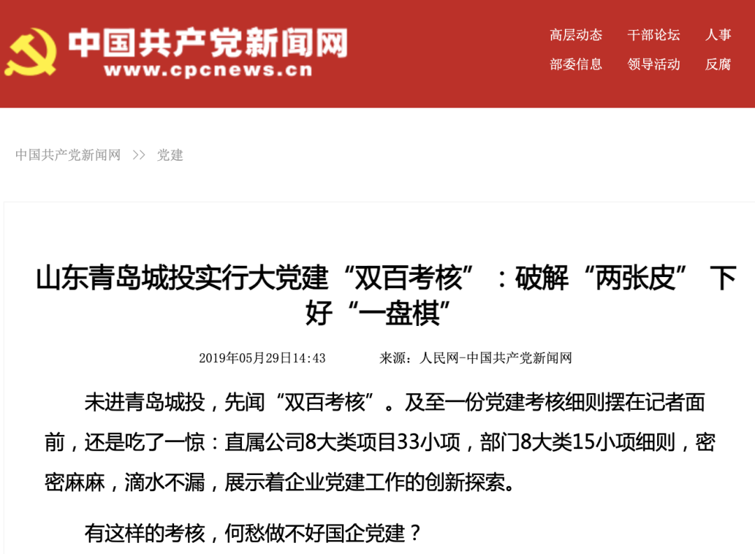 (图为中国共产党新闻网报道百家乐集团“双百考核”)