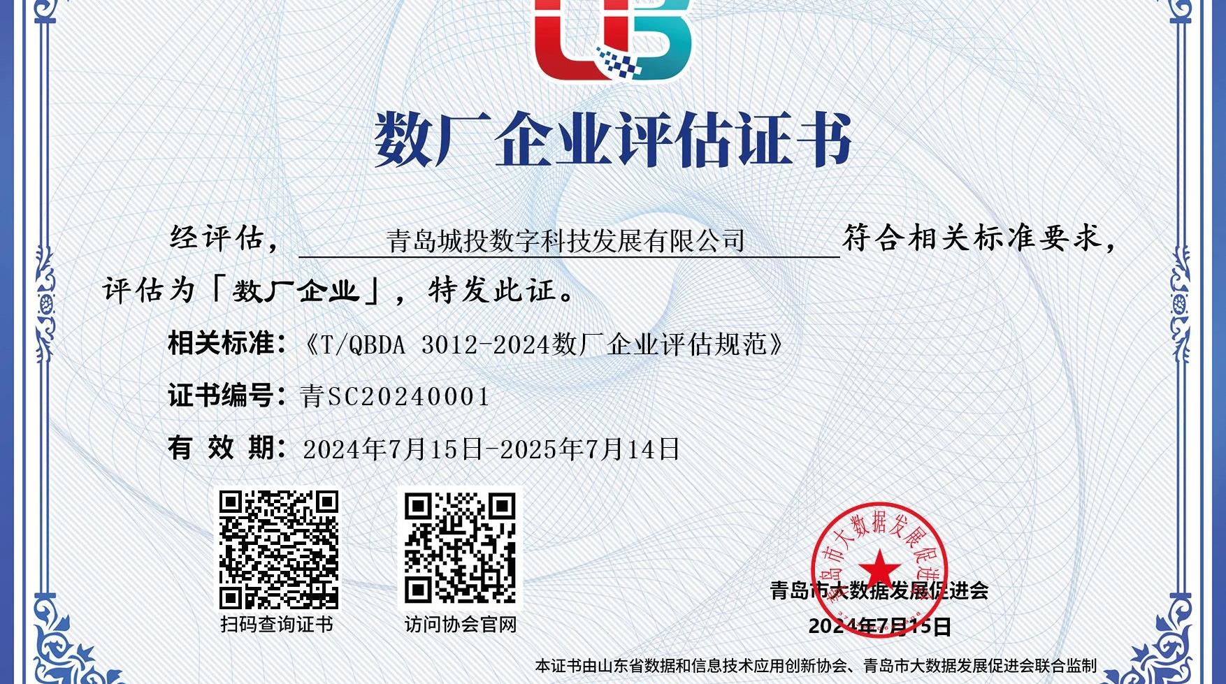 百家乐 旗下数科公司荣登2024年青岛市首批“数厂企业”名单