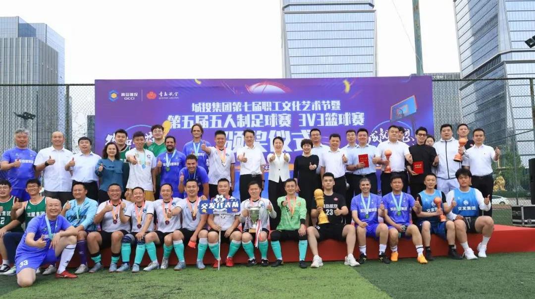 6月19日,经过为期14天的激烈角逐,百家乐 第七届文化艺术节暨第五届五人制足球赛在一片欢乐而热烈的氛围中顺利落下帷幕。城投集团党委委员、工会主席郭健出席活动,集团工会及各参赛单位工会有关负责同志参加颁奖仪式。(图为颁奖仪式活动现场合影)本次足球赛由城投集团工会主办,青岛航空工会承办,分小组赛、半决赛、总决赛进行。在为期半个月的赛程中,来自集团各板块共8支队伍齐聚绿茵场地,共享足球运动的欢乐,并收