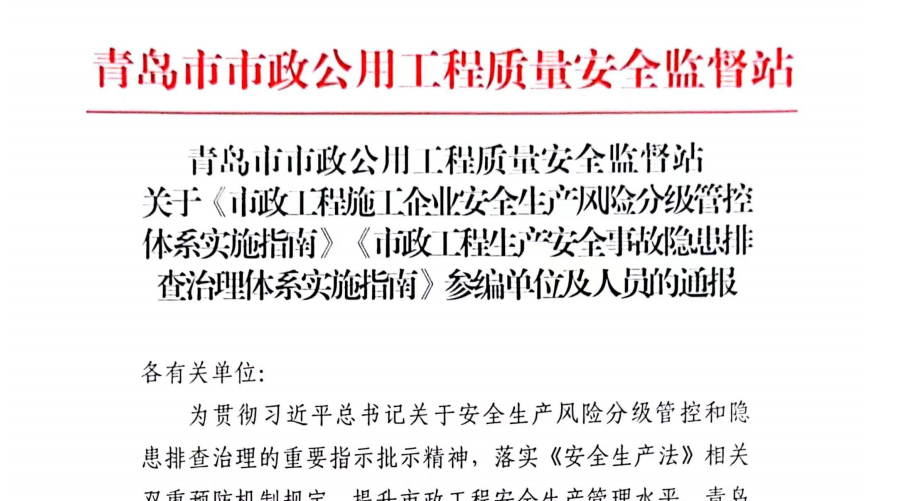 “标准决定质量,有什么样的标准就有什么样的质量,只有高标准才有高质量。”百家乐 深入学习贯彻习近平总书记关于安全生产、标准化工作的重要论述精神,近日,城投集团与青岛市市政工程质量安全监督站共同主编两项省级行业团体标准《市政工程安全事故隐患排查治理体系实施指南》(以下简称《隐患排查指南》)《市政工程施工企业安全生产风险分级管控体系实施指南》(以下简称《风险管控指南》),已正式发布实施。(图为两