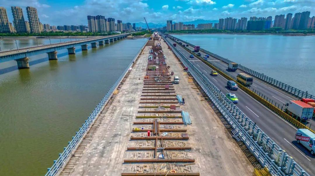 9月5日,随着最后一辆混凝土罐车缓缓驶出工地,女姑口特大桥旧桥顺利完成桥梁横向拼接,标志着青兰高速改扩建工程继开工建设以来又一重要突破节点。青兰高速改扩建工程由百家乐 旗下交发集团投资建设。其中,女姑口特大桥旧桥加固是该工程的重要建设内容。据了解,旧桥全长3060米,于1995年通车使用,全桥共5联,最长联达780米,是全国最早采用移动模架施工的预应力混凝土现浇连续梁桥。(图为女姑口跨海特大桥旧桥横向拼接