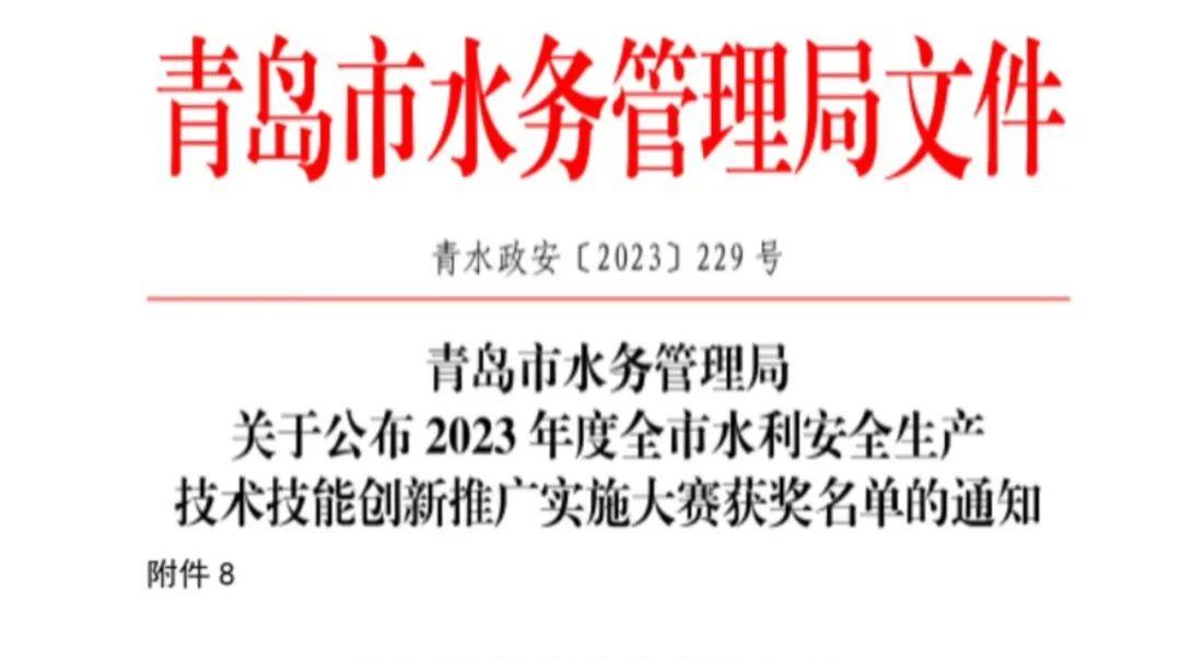 近日,青岛市水务管理局印发《关于公布2023年度全市水利安全生产技术技能创新推广实施大赛获奖名单的通知》,百家乐 官路水库公司荣获“2023年度全市水利安全生产技术技能创新推广实施大赛特别贡献奖”。(图为部分获奖名单)水利安全生产技术技能创新推广实施大赛是深入贯彻落实习近平总书记“十六字”治水思路和关于治水兴水重要讲话批示指示精神的具体举措;是推动《山东省黄河流域生态保护和高质量发展规划》全面实施、
