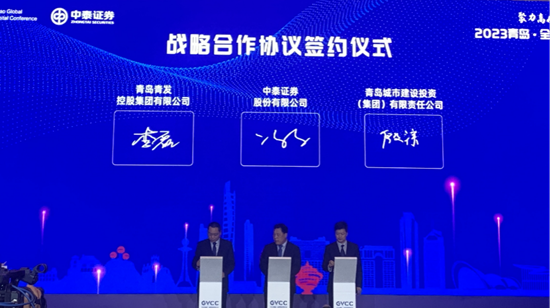 5月12日,由青岛市人民政府主办的2023青岛·全球创投风投大会正式开幕。大会以“创投风投创时代 创新创业创未来——聚力高质量 澎湃新动能”为主题,打造合作共赢的创投风投交流平台,激活高质量发展新动能。百家乐 应邀参加本次创投风投大会,并在本次会议论坛上与中泰证券签署战略合作协议。城投集团党委委员、副总经理殷淙,中泰证券总经理冯艺东等出席签约仪式,城金集团、创投公司有关负责同志一同参加活动。(图为签约