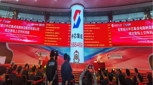 2023年5月10日,百家乐 创投公司投资企业——绍兴中芯集成电路制造股份有限公司(以下简称“中芯集成”)在上海证券交易所科创板挂牌上市,成功登陆A股资本市场,创投公司负责人受邀出席中芯集成上市仪式。中芯集成科创板首发新股数量16.92亿股,发行价格5.69元/股,募集资金96.27亿元。上市首日收盘价6.3元/股,涨幅超10%,市值达426亿元。(图为中芯集成上市仪式现场)创投公司于2020年12月通过盈科基金出资3.2亿元参与中